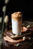 - In a tall glass, add the ice cubes, pour the milk and then using a spoon to scoop the whipped coffee mixture on top and serve right away.